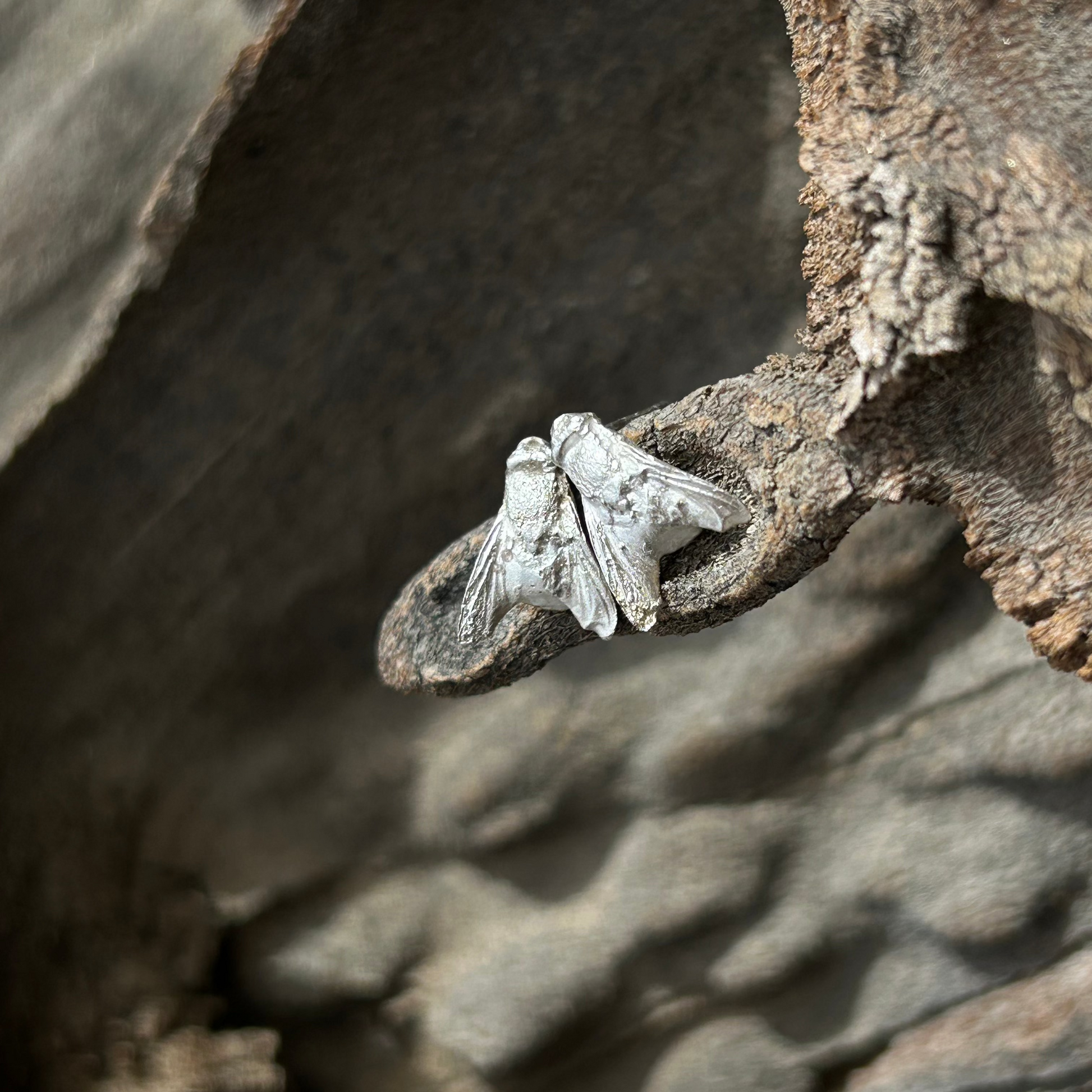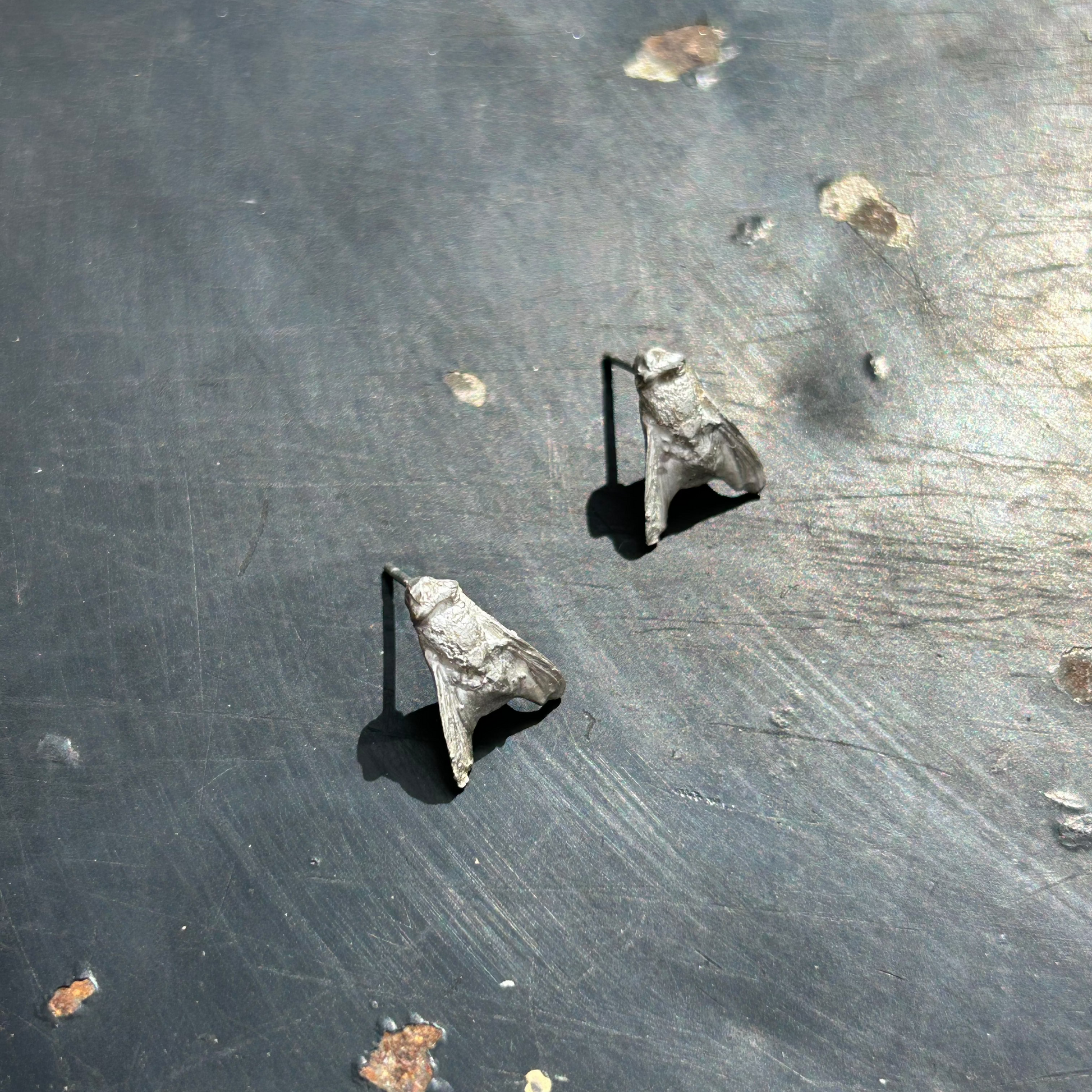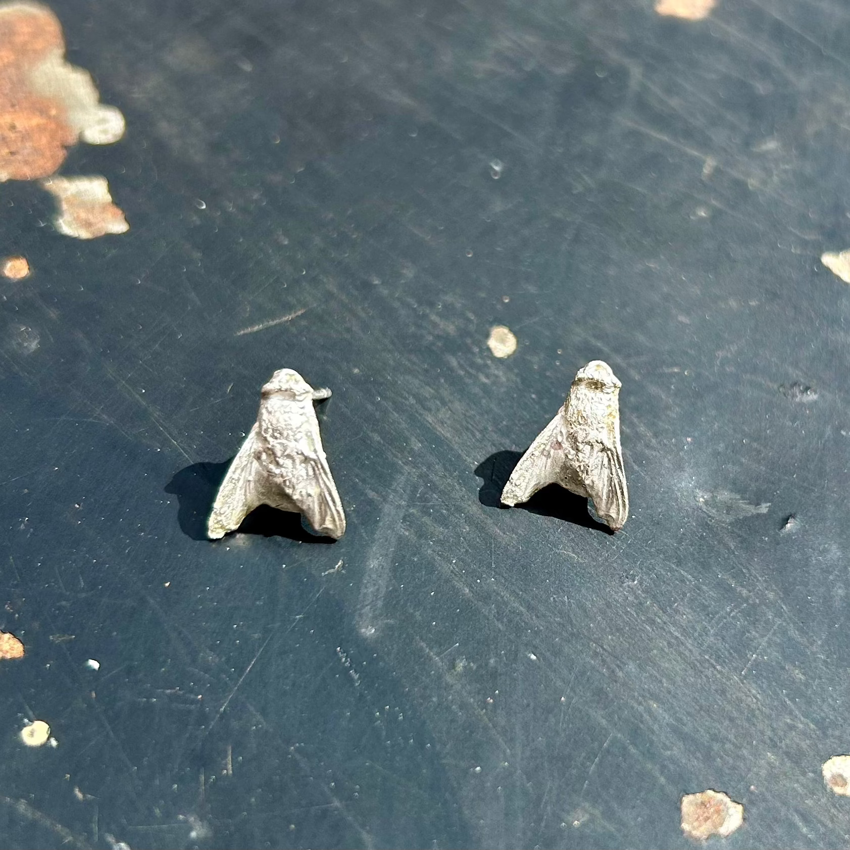 Cast sterling silver flies collected from the windowsill in my studio, with sterling silver ear posts and earring backs.